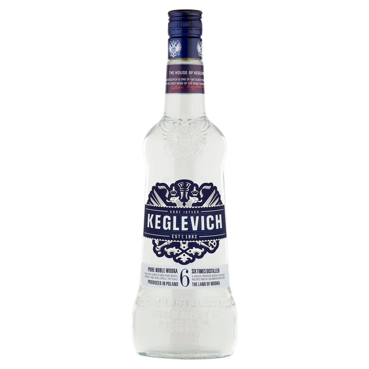 Keglevich vodka è ottenuta da un mix di 60% frumento e 40% triticale. Pura e nobile vodka distillata in 6 passaggi dai nostri mastri distillatori.