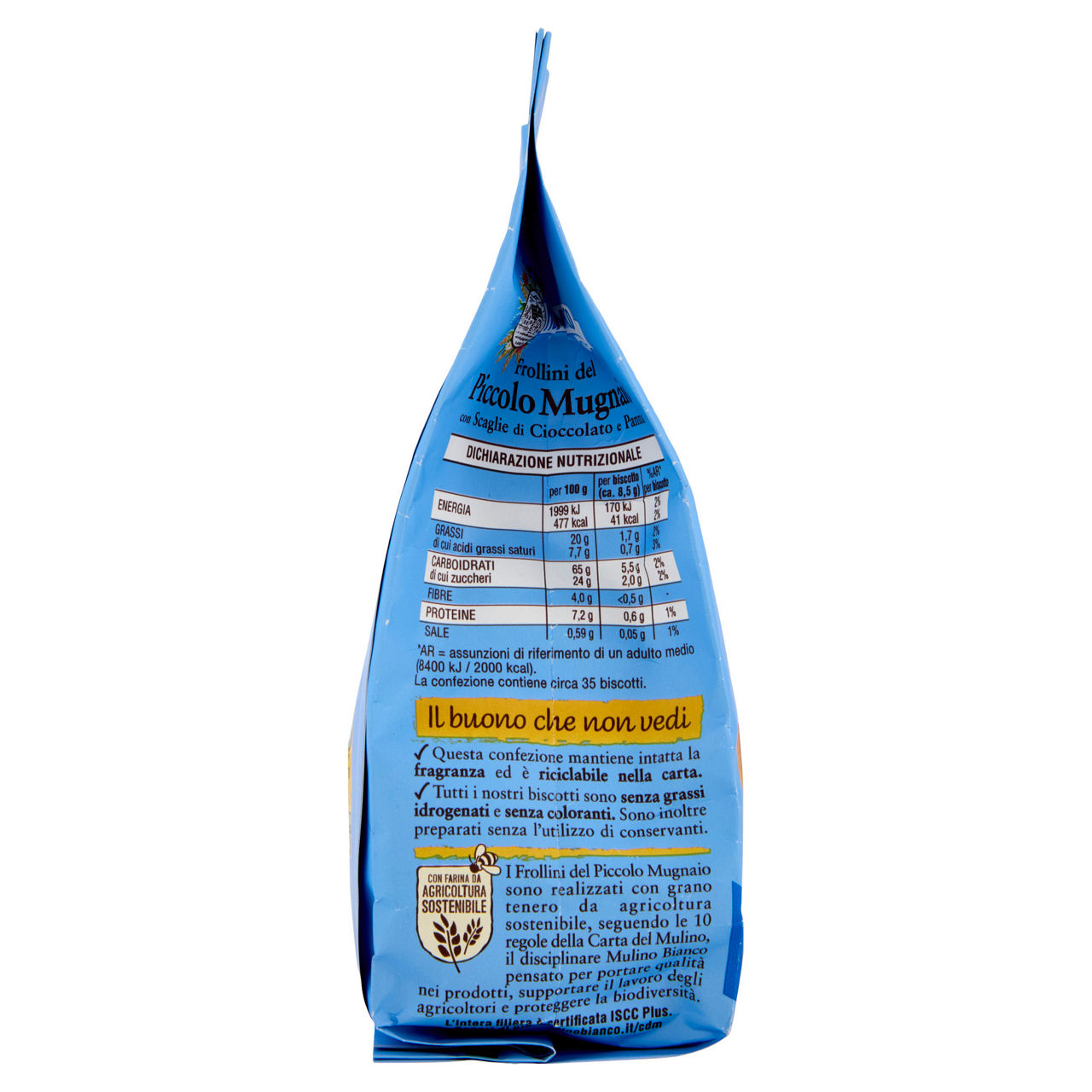 Il buono che non vedi - Questa confezione mantiene intatta la fragranza ed è riciclabile nella carta. - Tutti i nostri biscotti sono senza grassi idrogenati e senza coloranti. Sono inoltre preparati senza l'utilizzo di conservanti. Con farina da agricoltura sostenibile I Frollini del Piccolo Mugnaio sono realizzati con grano tenero da agricoltura sostenibile, seguendo le 10 regole della Carta del Mulino, il disciplinare Mulino Bianco pensato per portare qualità nei prodotti, supportare il lavoro degli agricoltori e proteggere la biodiversità. L'intera filiera è certificata ISCC Plus. Scopri di più: mulinobianco.it/cdm