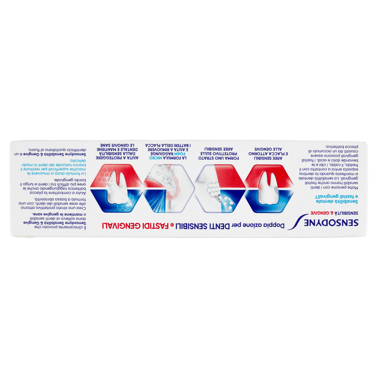 Formula con microfoam Marchio raccomandato dai dentisti italiani per denti sensibili Mantiene le gengive sane Doppia Azione Clinicamente Provata per una Protezione Quotidiana dalla Sensibilità Dentifricio quotidiano con fluoro