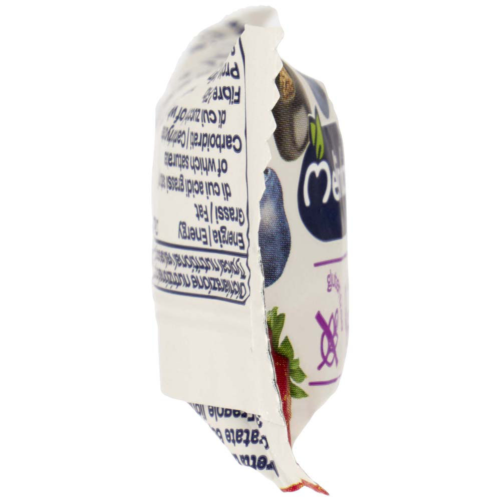 Mele golden delicious disidratate 68,4%, nocciole 21,7%, ribes neri liofilizzati 3,3%, mirtilli liofilizzati 3,3%, fragole liofilizzate 3,3%. Può contenere altra frutta a guscio e arachidi.