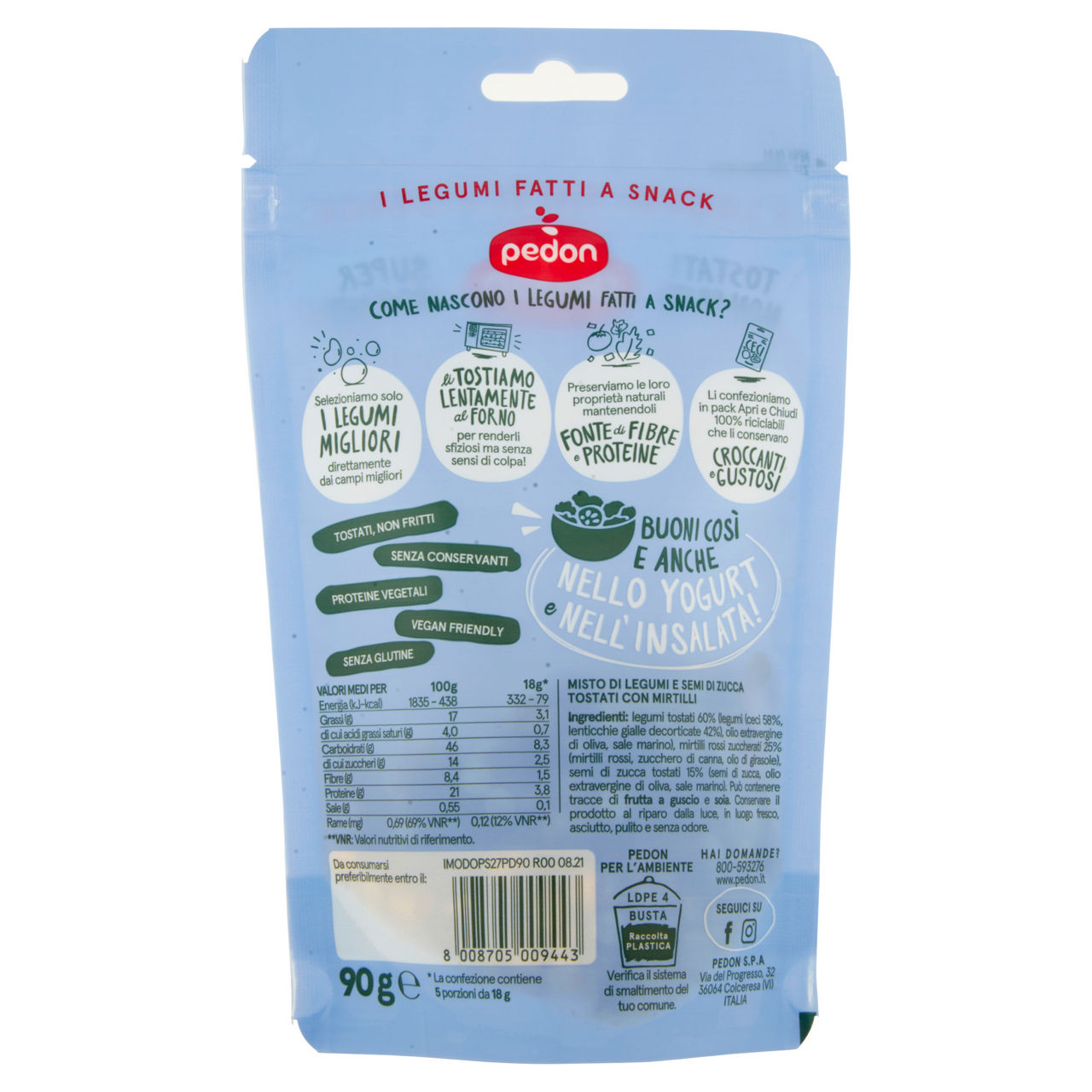 Snack di legumi mirtilli e semi di zucca tostati non fritti 90 gr