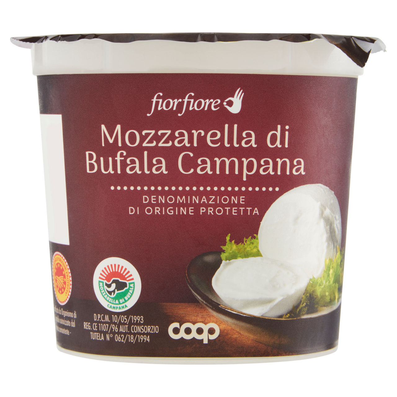 "Dal latte intero di bufala sapientemente lavorato secondo metodi tradizionali, nasce la Mozzarella di Bufala Campana DOP Fior Fiore, una vera specialità e un'autentica delizia per i palati più raffinati. Si distingue per un'ulteriore caratteristica: una specifica alimentazione delle bufale senza aggiunta di grassi animali."