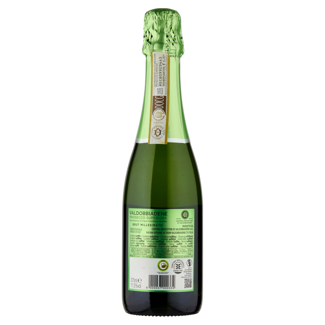 Valdobbiadene Prosecco Superiore DOCG Brut Millesimato, vino bianco spumante brut italiano. Prosecco Superiore Denominazione di Origine Controllata e Garantita